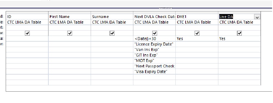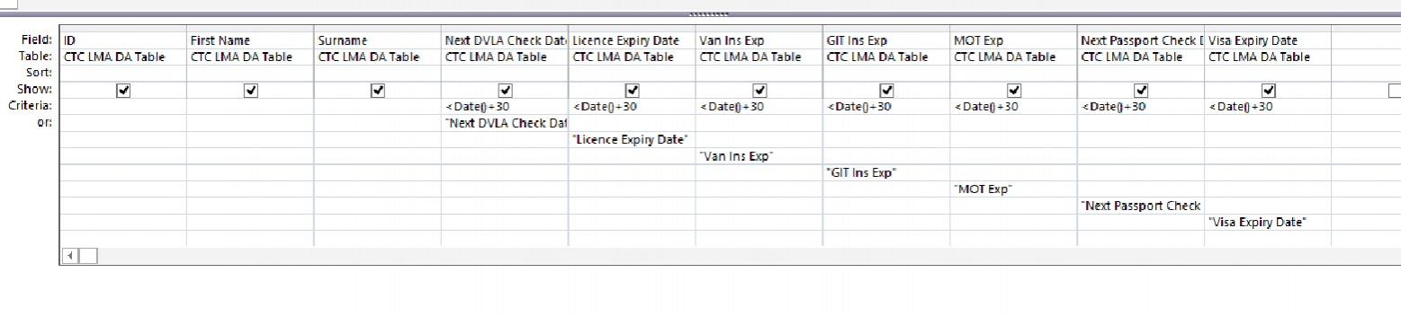 I have made a database to show me dates that I need to check various documentation from my contractors.