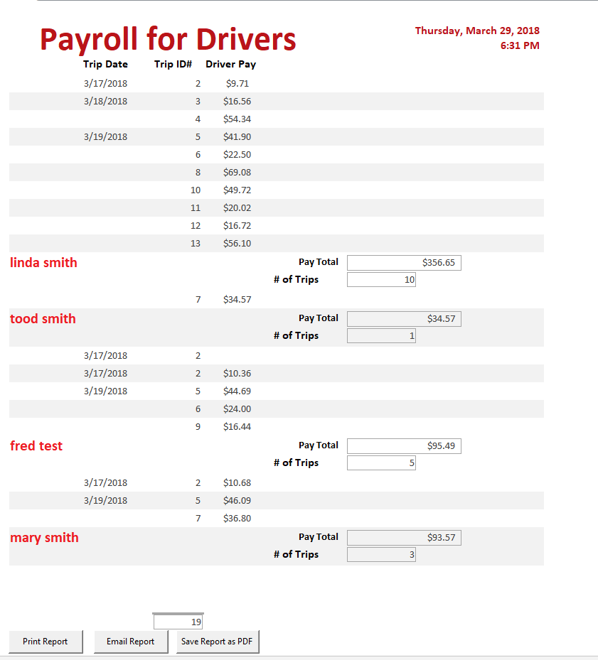 I read this article before posting for help, from what I determine all his references take a single report (all 10 pages) and send that same report to multiple people. I’m interested in taking that 10 page report and only sending a single page that belongs to that driver. 10 pages 10 emails 1 page per recipient.