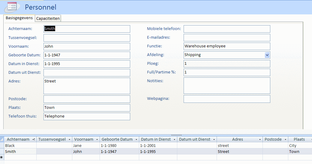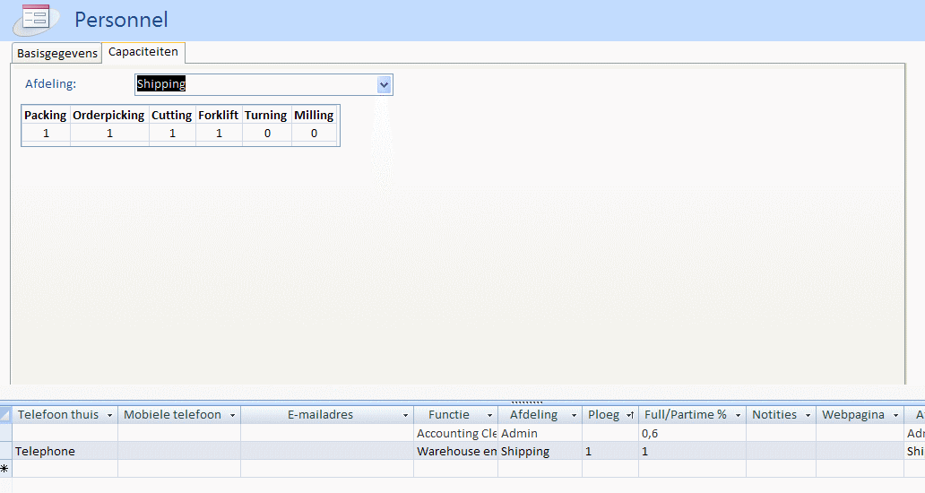 I have created a form with 2 tabs: 1 - employee info, 2 - tasks/capacities