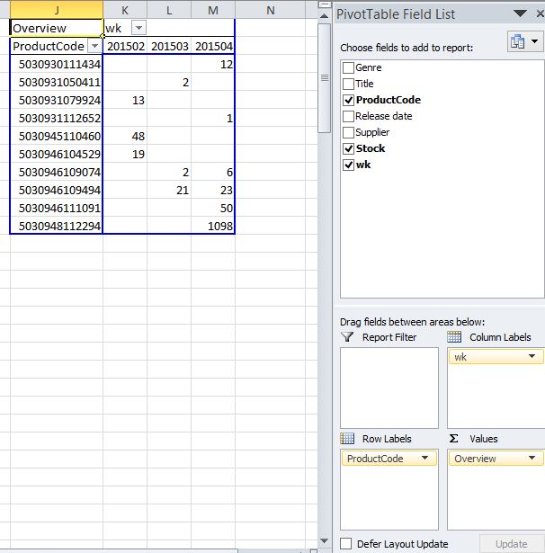 I receive a stock report every week from a customer, I would like to make an overview on a weekly basis of the stock changes.