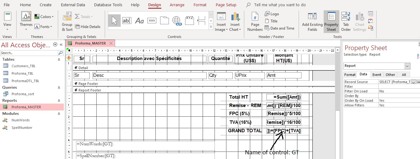 I've created a report for final printing of proforma and on that report I need to show grand total (which is a calculated control) in words.