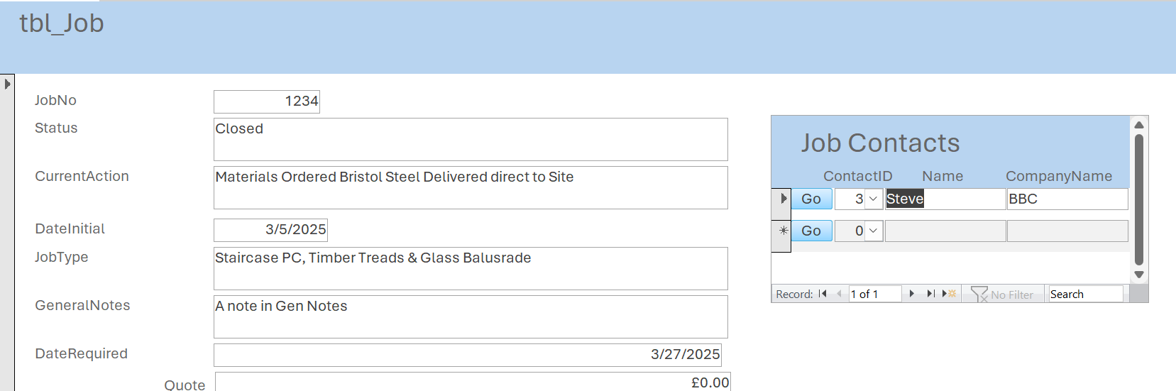 I've got as far as creating the jobcontact subform in the front end