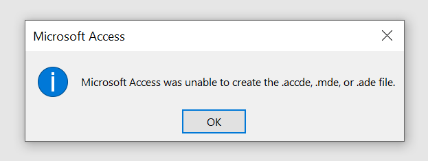 Right. You'll have to fix those errors before you can create a compiled version.No, I have Access and have created the database using Access but when I try and save it for a runtime file, I get an error?