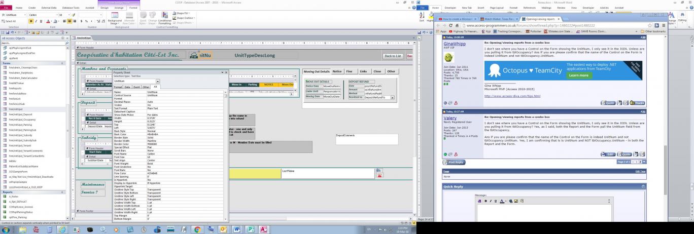 Ans if you are please confirm that the name of the Control on the Form is indeed UnitNum and not tblOccupancy.UnitNum. Yes, I am confirming that is is UnitNum and NOT tblOccupancy.UnitNum - in both the Report and the Form.