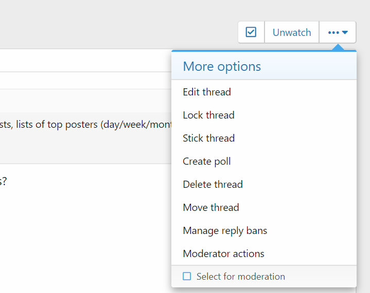 Ah yes, that was there. Standard level members had a very different thread tools to mods. The mods had all the edit thread, sticky thread etc. functionality.