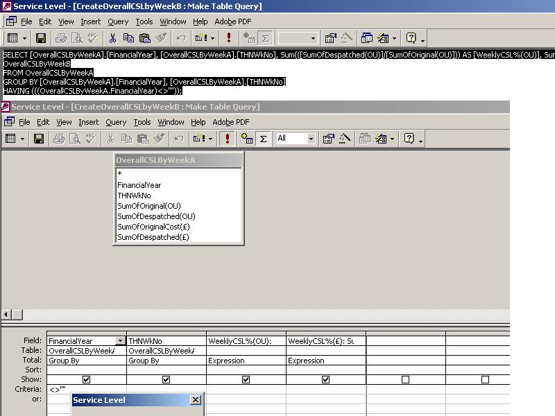 I've uploaded a screenshot of the Design View and SQL view of the query but have to admit, the query part is beyond my knowledge at present. It will be something I'll be looking to learn in the coming weeks.