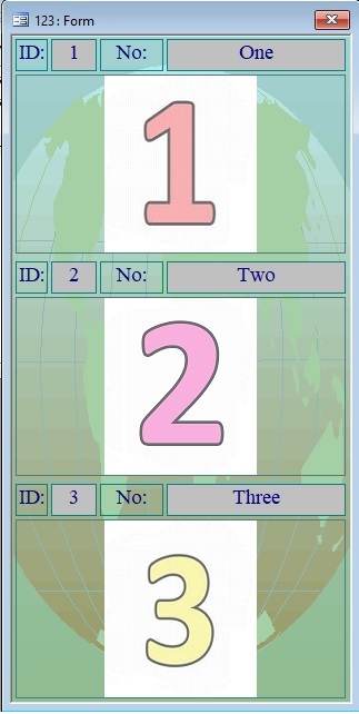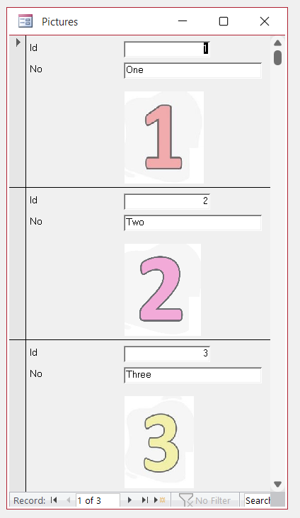 There is a question about the continuous form. There are three pictures in the table. But the form only shows one picture...As shown in Picture-1...It is necessary to be as in Picture-2...Access 2003.