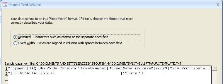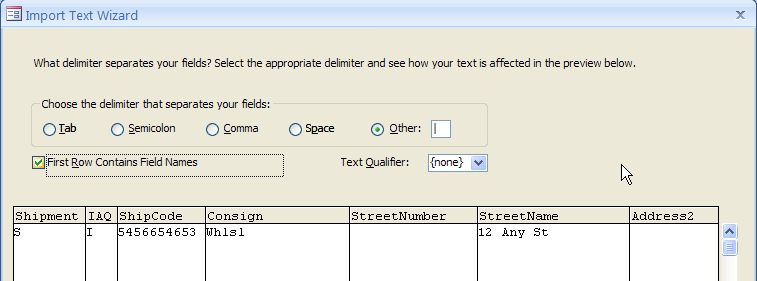 I don't follow you...sounds like you are describing the Macro screen and then the Import wizard...I did specify PIPE in the Wizard and include headings?