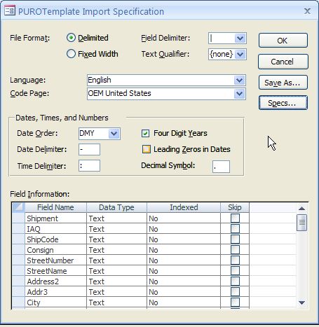 I then imported manually back into Access and created a spec file using the Advanced button and also specifying the "pipe" as the delimiter, and also checked of first row as heading...saved the spec and then when back to my code and chose the Spec...when I run the code it exports the records with out the heading??? is this a glitch or am I doing something wrong? I have redone the spec several times to make sure I did not do it wrong. Do you know where I can go to actually view the schema?