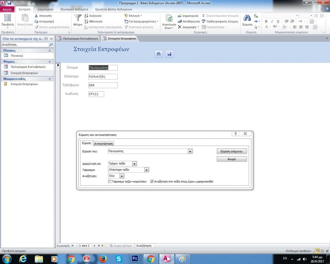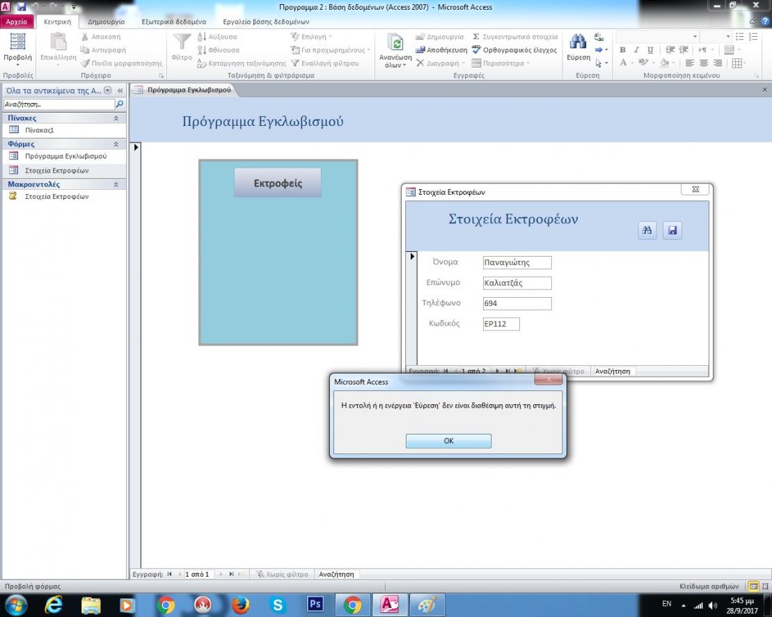 Well,i m new to all this. I build a central form with buttons which lead to secondary forms or queries etcc when clicked. So,in picture u see,in the central form,called Προγραμμα εγκλωβισμου i placed a button called Εκτροφεις,which when is clicked,i want to open the form στοιχεια εκτροφεων in a new window...I did that ok,creating a macro for that,all works ok,until....