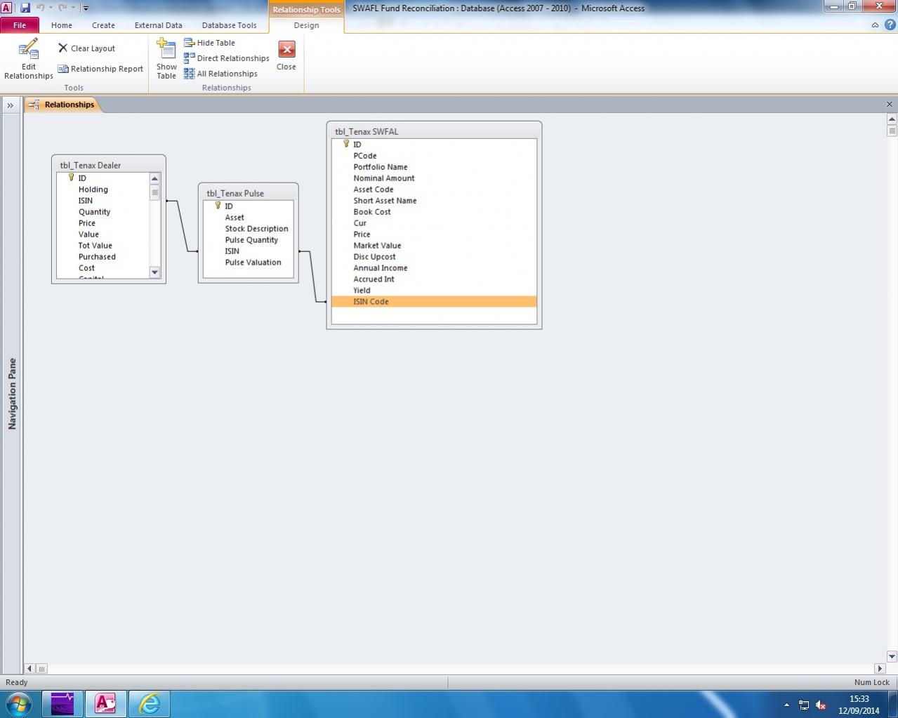 I have developed a system where three separate lots of data are imported and compared in a query. There is a unique code contained within each import, which is the key field that relates all three sources.