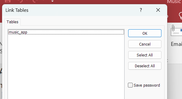 Bellow is the code witch i used for dsnless link the table. I am pretty sure thet is correct (because the first table apear correct linked and opes in database window).