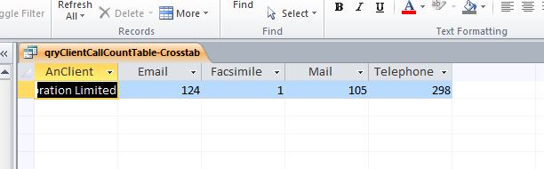I have a macro set up to replace the table with new data when I want the stats for a different client between new dates, therefore the different ‘methods of receipt’ may vary for the less active clients i.e.: they may only have telephone and email .