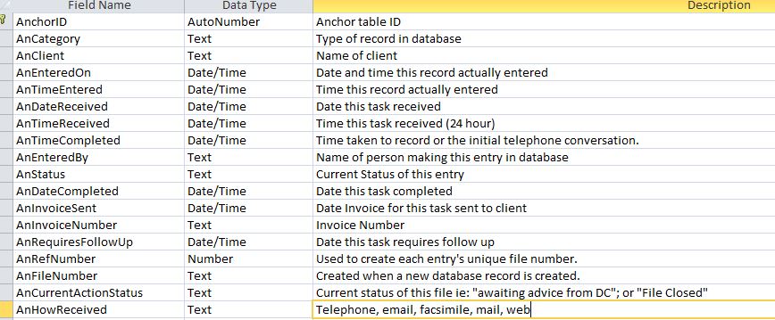 I have a database which among other things records how jobs are received – i.e.: Telephone, Email, Mail, Facsimile or Web.