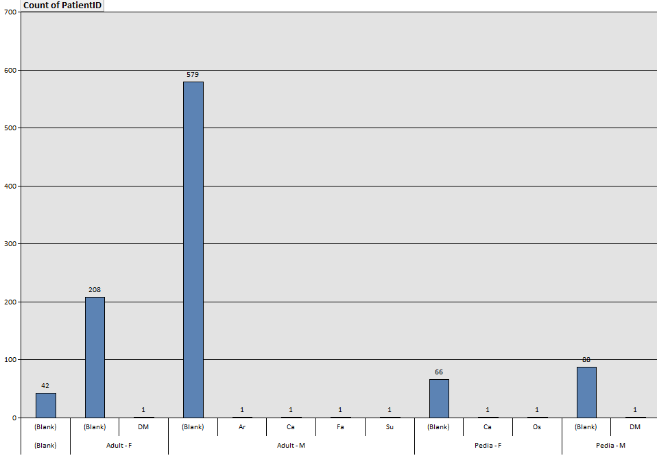 The pivot chart (pic4) does not show the real number of associated diseased entered in the combo-boxes, I guess it counts only the first value in each comb box.