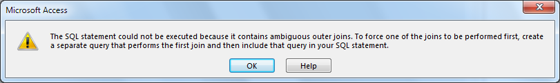 What's it is say is it cannot correctly display the data from those three tables, because you have LEFT and RIGHT joins. The joins, in this case need to go in one direction LEFT or RIGHT. So, play with the which way the little arrows are pointing. Understand?