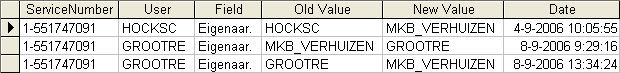Here at work we use two tables. One for creating records and for the updates of the created records. In the attachment you see a part of the table 'updated'. What you see is one ServiceNumber (1-551747091) which is changed users (Eigenaar.) three times.