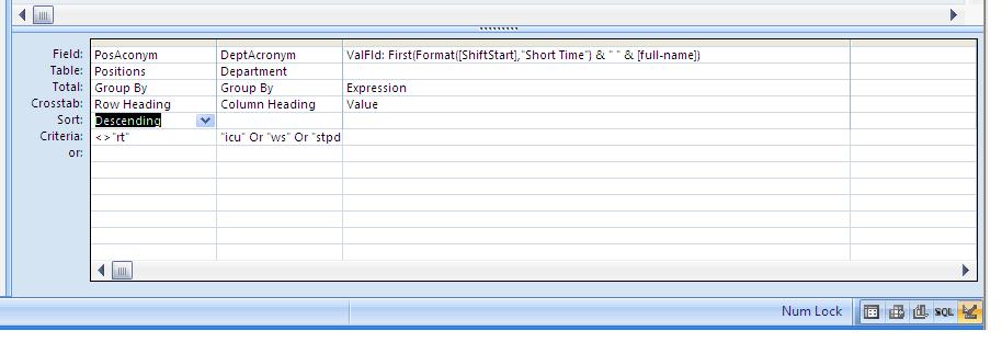 I want the RN and A as the rows and I want the departments as the columns.