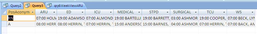 I have a problem with the rows because it only shows me one RN and one A their should be 6 RN and 4 A. Not sure how to fix this.