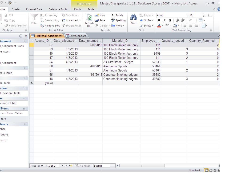 Please see the attached table of materials checked out and materials returned. Will someone please help setup a query so that if an item has been returned and matches the item checked out, Both the original check-in and the matching return records are filtered and not displayed in the Combo Box.