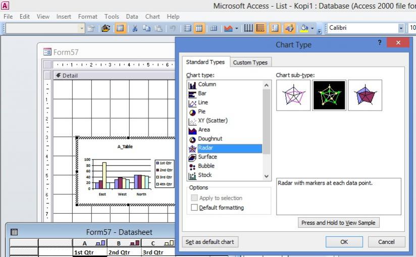 I found the Microsoft Graph Chart in the Unbound Object Frame. Is this where the radar chart is found?