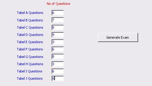 I have currently have ten tables in total... named 'Subject1', 'Subject 2' etc etc. Each table varies in the amount of questions held within. 'Subject1' for instance might contain 20 whereas 'Subject3' may only have 5. What I would like to be able to do via an input form is to manually specify the amount of records I would like it to generate, per the questions in the table, in order to generate an exam paper.