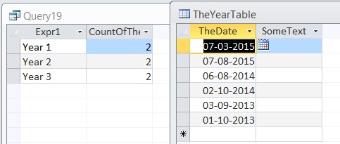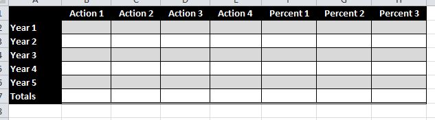 In this database that I've been working on for some time, I have a series of four actions that take place and fields that track the dates for these actions. I have created summary queries, using IIF and Totals (Sum), to pull out a number of how many of each events occur in each year. I also have some statistical information tracked on a separate report for each year that tracks percentages as appropriate. What I'd like is a report format that allows me to have the actions across as columns and the years as rows. I'm attaching an image of the kind of thing I have in mind here: