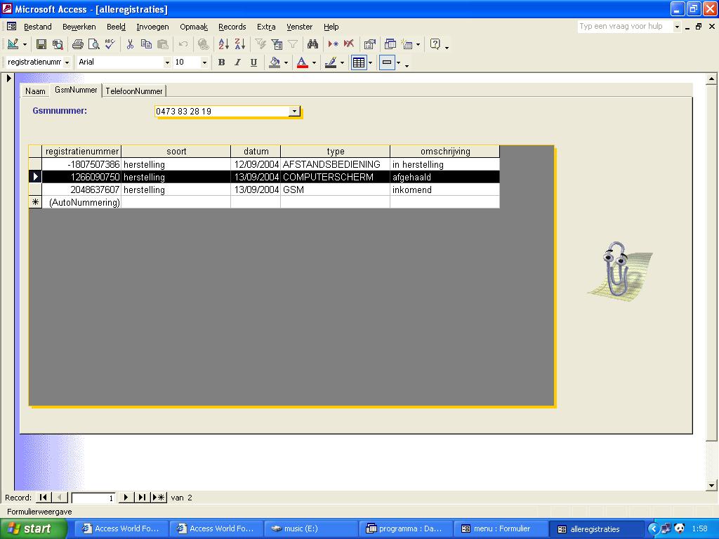 I have selected a row in the subform after filtring on cellphonenumber...but when i wanne use the value of field "registratienummer"(registrationnumber) from the selected row... and place that value to a field....