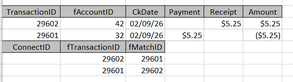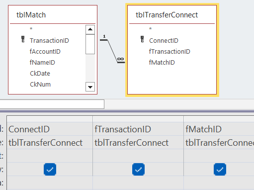Everything I've read says I need a subform with the bridge table for the transfer. The subform is linked by TransactionID and fTransactionID.