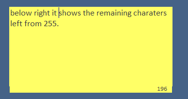 Me.txtCharsUsed = (255 - (Len(Me.InfoNotes)))