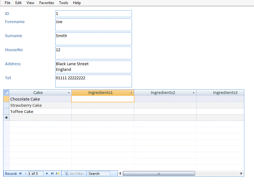 Thanks arnelgp, just one wee issue, the subform does not display the cake names until I close the subform then reopen the form!