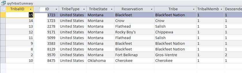 I have used this same subform directly on form and it works, but using it as a third layer is causing problems. It works but will not display all records only the first record entered. All records are displayed in the TribalInfo table.