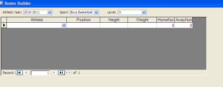 How would I go about making this work? I have attached a screenshot of what I am trying to do. Basically, I want to be able to choose the three combo box values, then add the information to tblRoster without needing to choose the sport, level, and year each time.