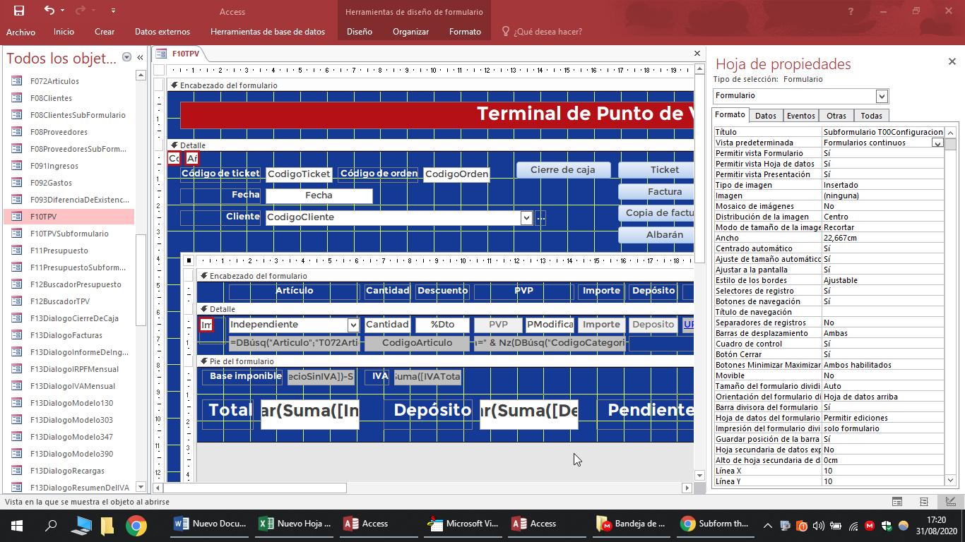 - I have checked the height of the subform and the height of the subform detail. Here you can see it (sorry it's in Spanish, it's called "Alto"):