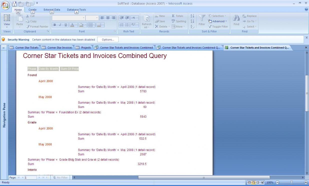 Ok now for my problem....I have been trying multiple code to Sum the Price from both tables together. I would need to have it sort by phase, group by month, sum totals for grouped month then do a total sum of all months...Does that make sense? If you could supply the code that would be fabulous and make my life much easier (well at least until I move on to the next step)! Thanks