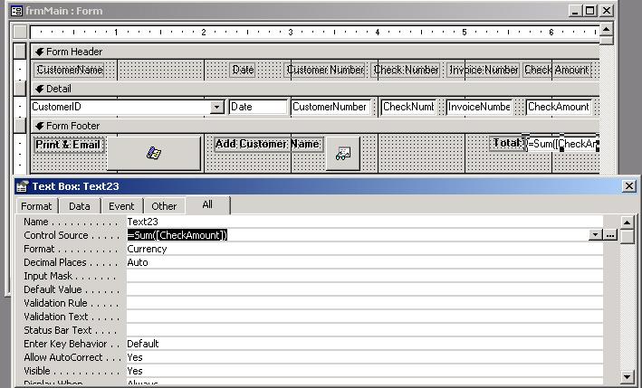 I have a form that inputs check information. I have a textbox on the bottom of the form that calculates the sum of the checks entered. That works fine. But what I want to do is only calculate for todays date. Is there a way to do this by changing the control source? Or do I have to use a query to do this?