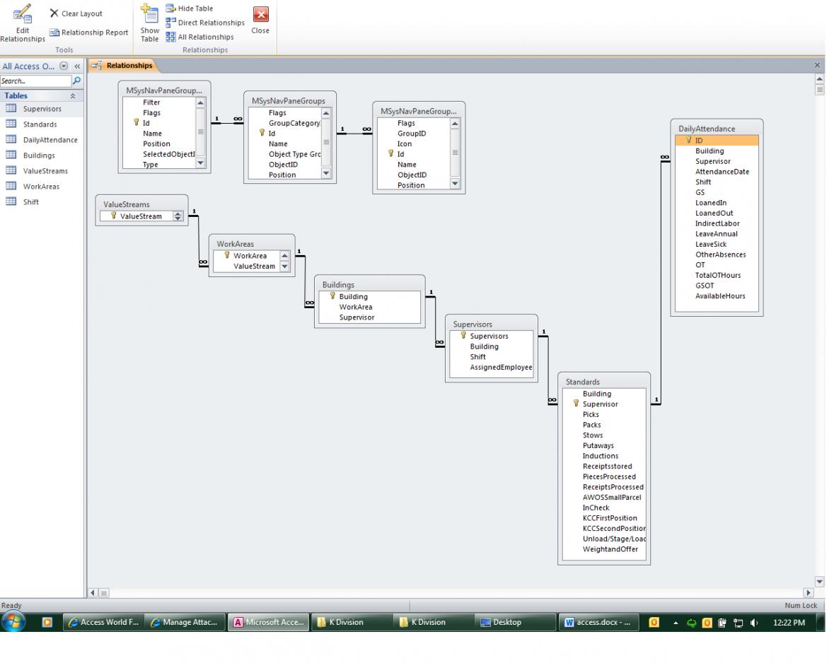 My end goal is to have a repository where my area supervisors can enter their attendance which will determine their capability for the day based on the standards (standard*attendance*direct labor in = Capability) for the numerous standards which encompass their work areas.