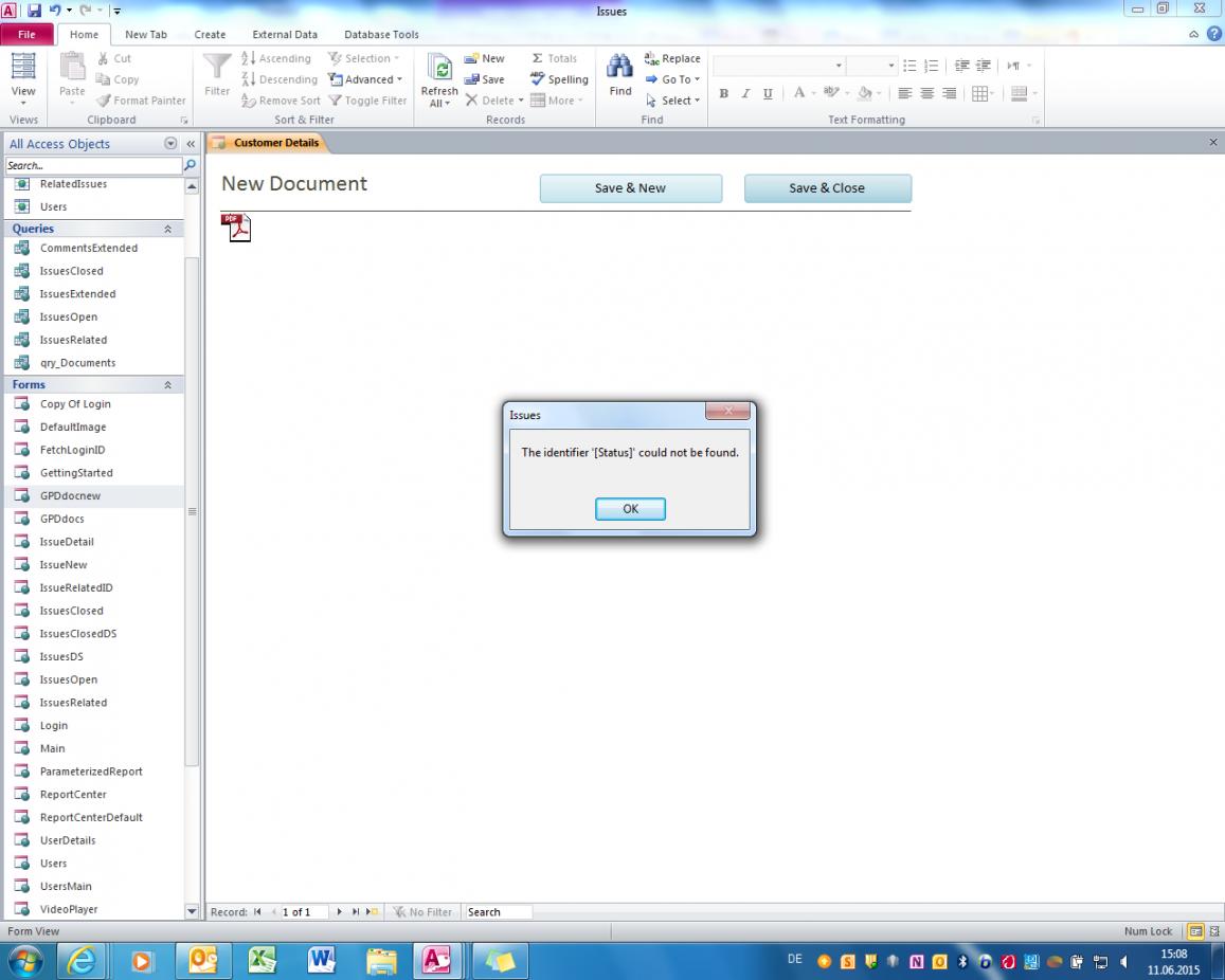 i have a form in ms access and i want to attach a file in it and then save it to the related table but when i press the save button i have the below message: