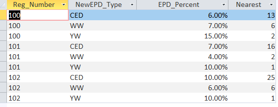 I want to make that into a CrossTab with Reg_Number as row header, and NewEPD_TYPE as Column Headers and show Nearest.