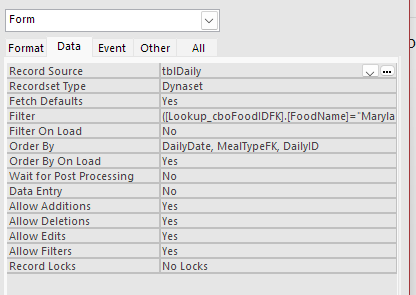 I design this form as a data entry form. The record source of this form is a table.