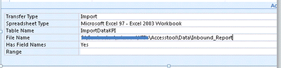 The excel file (Named Report) has 4 sheets, but I want access to upload the second one called "Data".