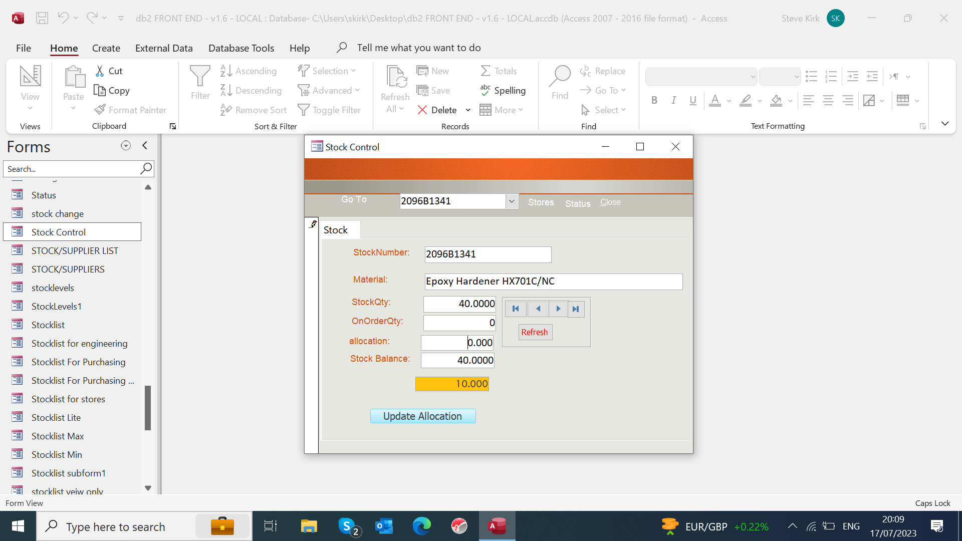 the 3rd form shows this time i am going to remove 20 from stock but nothing was allocated this time then in the 4th form you will see the yellow update did not go back to zero and stayed at 20 i have attached the code and have no idea why it will not changed to zero