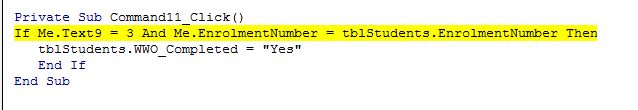 If Text9 = "3" And custNumber = tblCustomers.custNumber Then