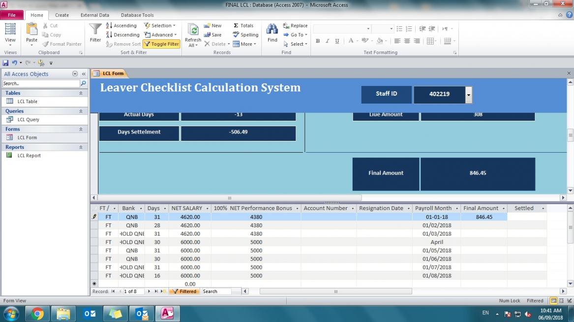 i have the attached DB , ( FORM & Report ) i already have a split form and combo list which i already filtered by staff ID ( Macro is attached ) . now i wanna to apply another filter in report ( another filter with Final amount value , ) i mean when i type staff ID in combo list in form then i goto print report , i wanna report to show the mentioned staff ID with final amount only , not all records for this id . so is there any macro i can add it to apply another filter ? Macro.jpg