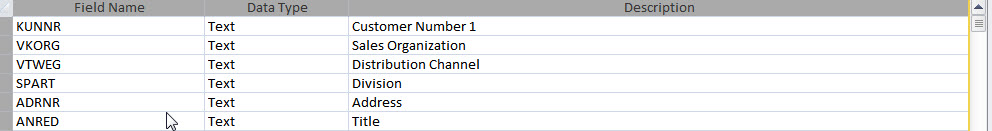 I am using Access 2010. I have many tables that are downloaded from SAP into Access. Within each table structure are the following standard Access attributes: Field Name Data Type Description