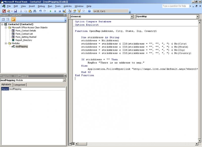 I'm trying to modify the Contacts.accdb template to suit my purposes - for the most part it does what I want/need. I'm having to hunt down a few places where apparently field names are referenced in some embedded macros, VBA modules, etc. and are giving me minor amounts of grief in the form of error messages.