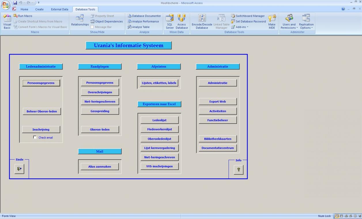 The database loads and works fine, but ... I have no clue how to see the list of tables, queries, forms, ... in that database ... there doesn't seems to be a tab on the menu.