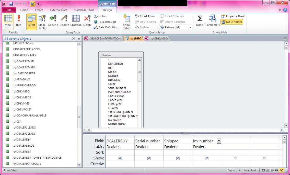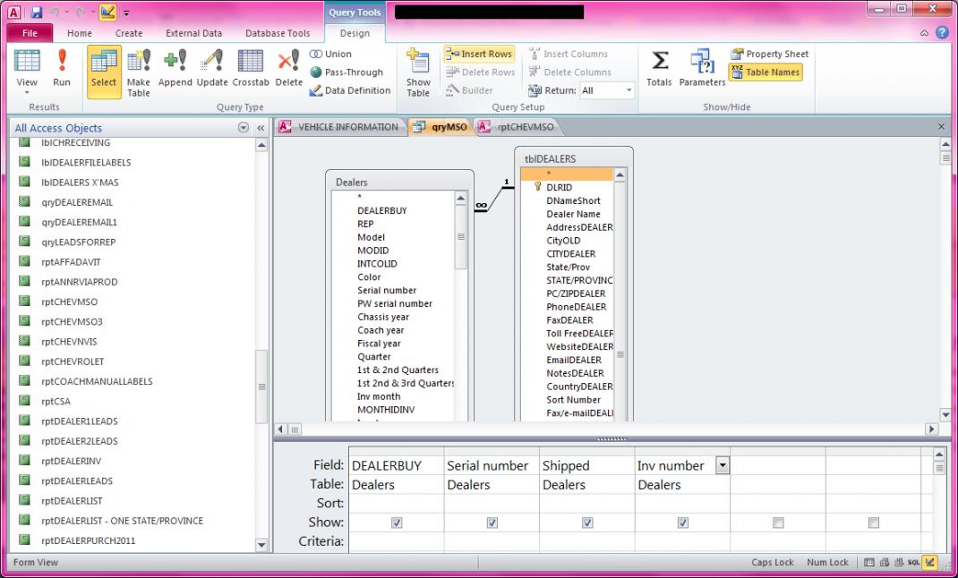 unfortunately that isn't the case here. All the records are showing the same dealer and all the different dealers are in tblDEALERS as DEALERBUY is looking up from that table.