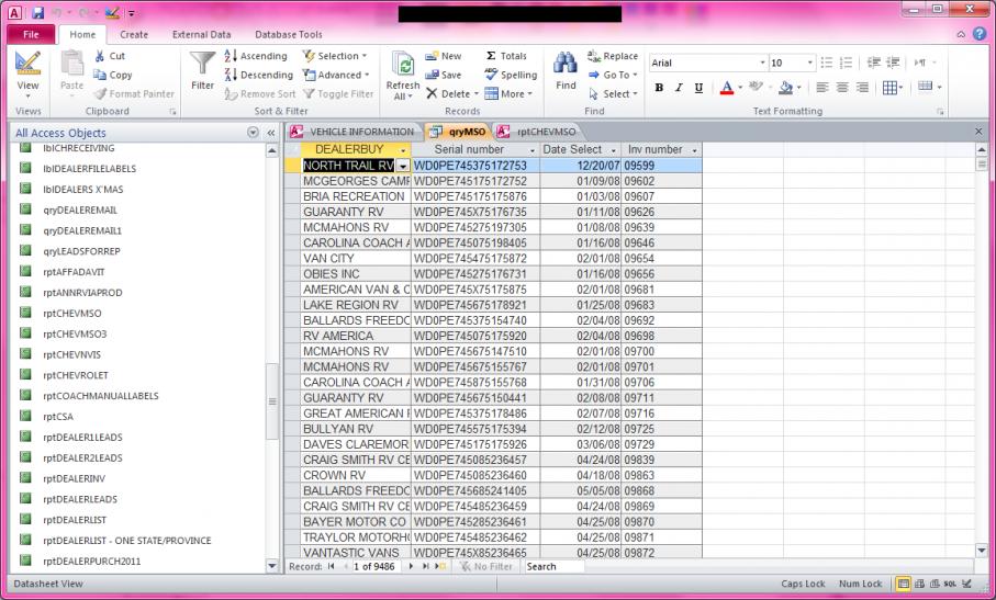 you might want to check if DEALERS contains MCMAHONS RV with all these serialnumbers. Which means that there is nothing wrong. Linking to the table tblDealers just sorts the result.