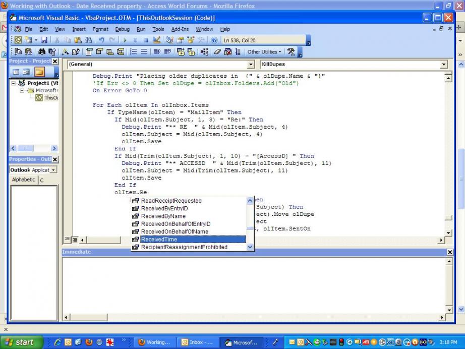 Hey, does anyone know how to determine an Outlook mail items date received property? Its nothing obvious like mailobject.received.
